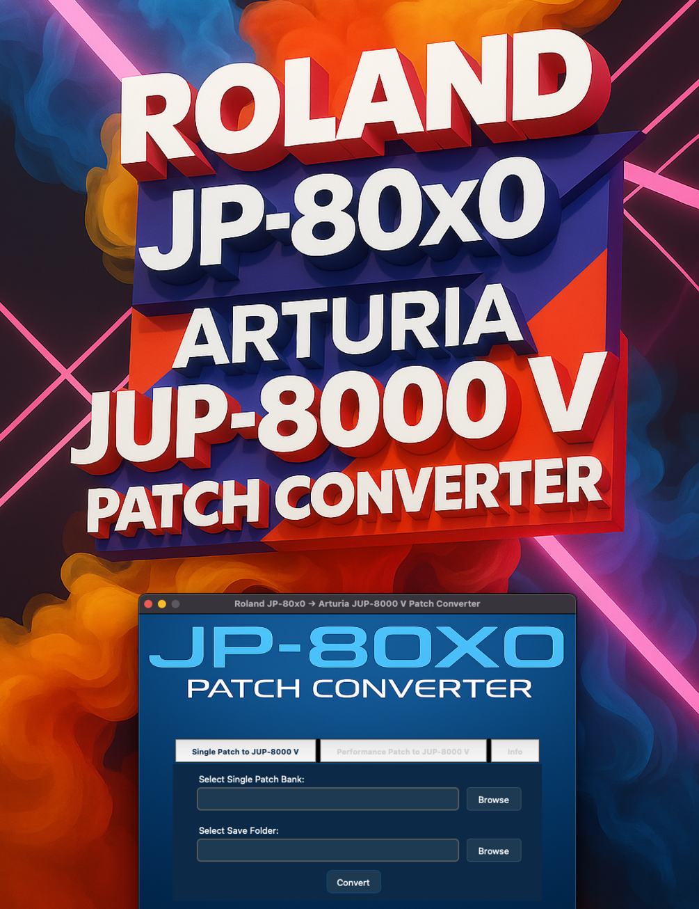 Automatically converts Roland JP-80x0 Single patches to Arturia JUP-8000 V format.